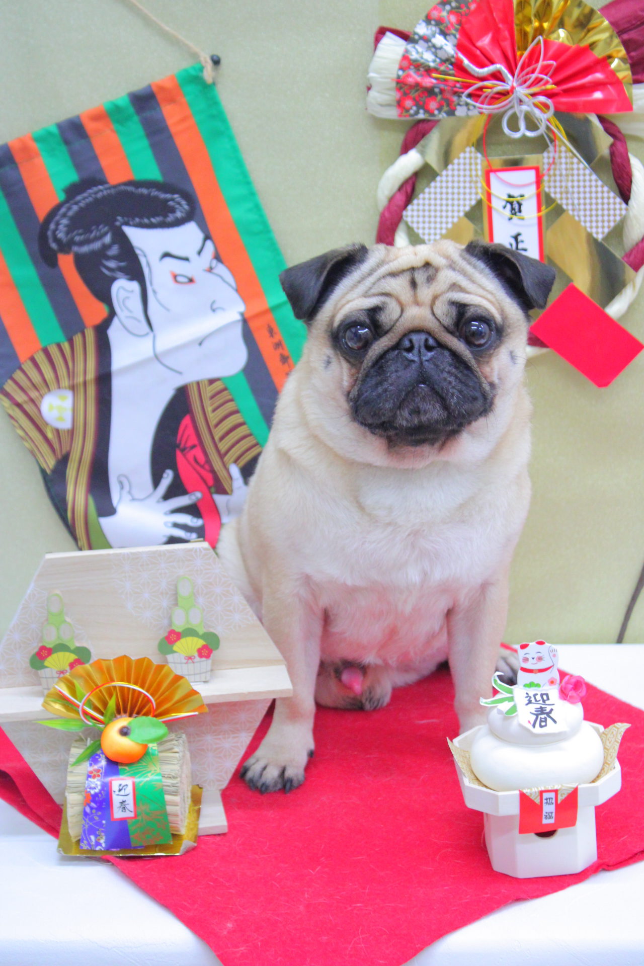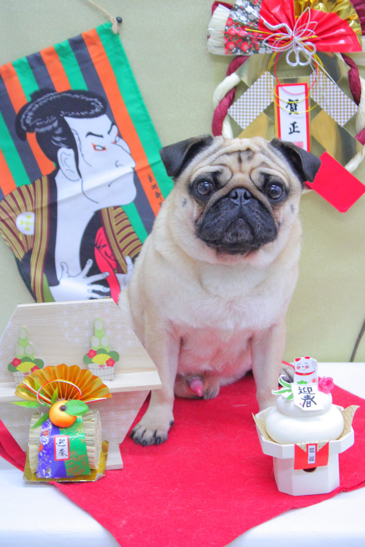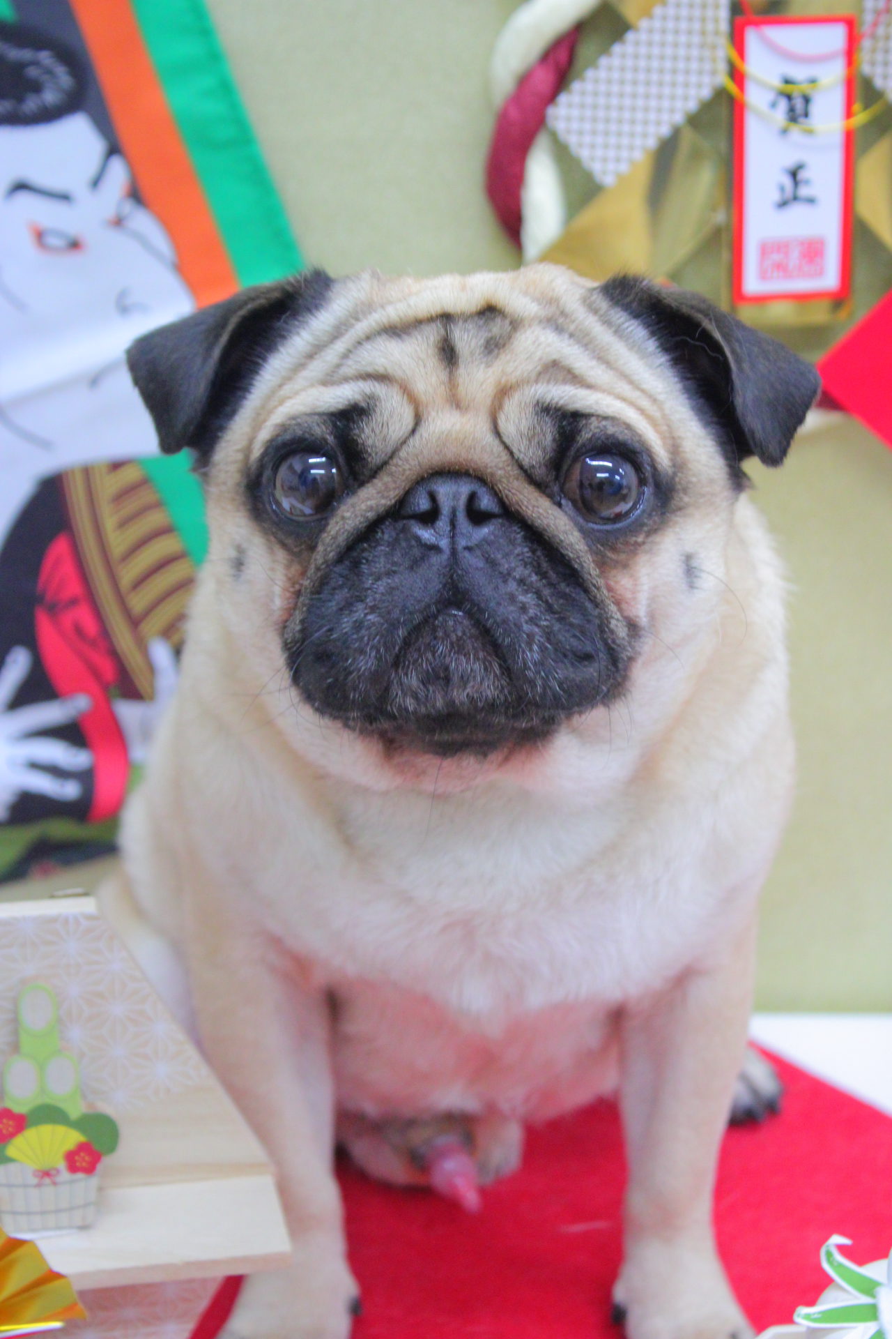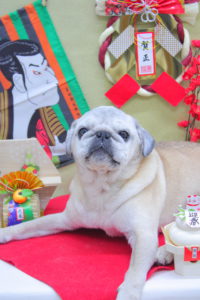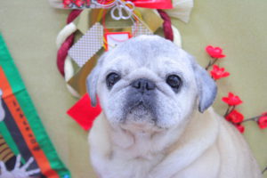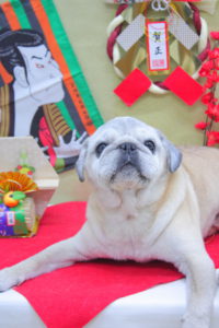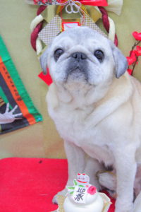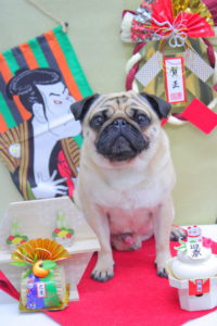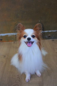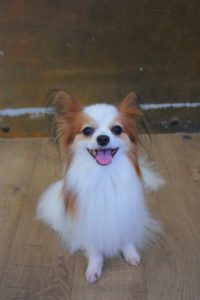 それぞれお座りしてにっこり笑顔でハイチーズわーい (嬉しい顔)揺れるハート