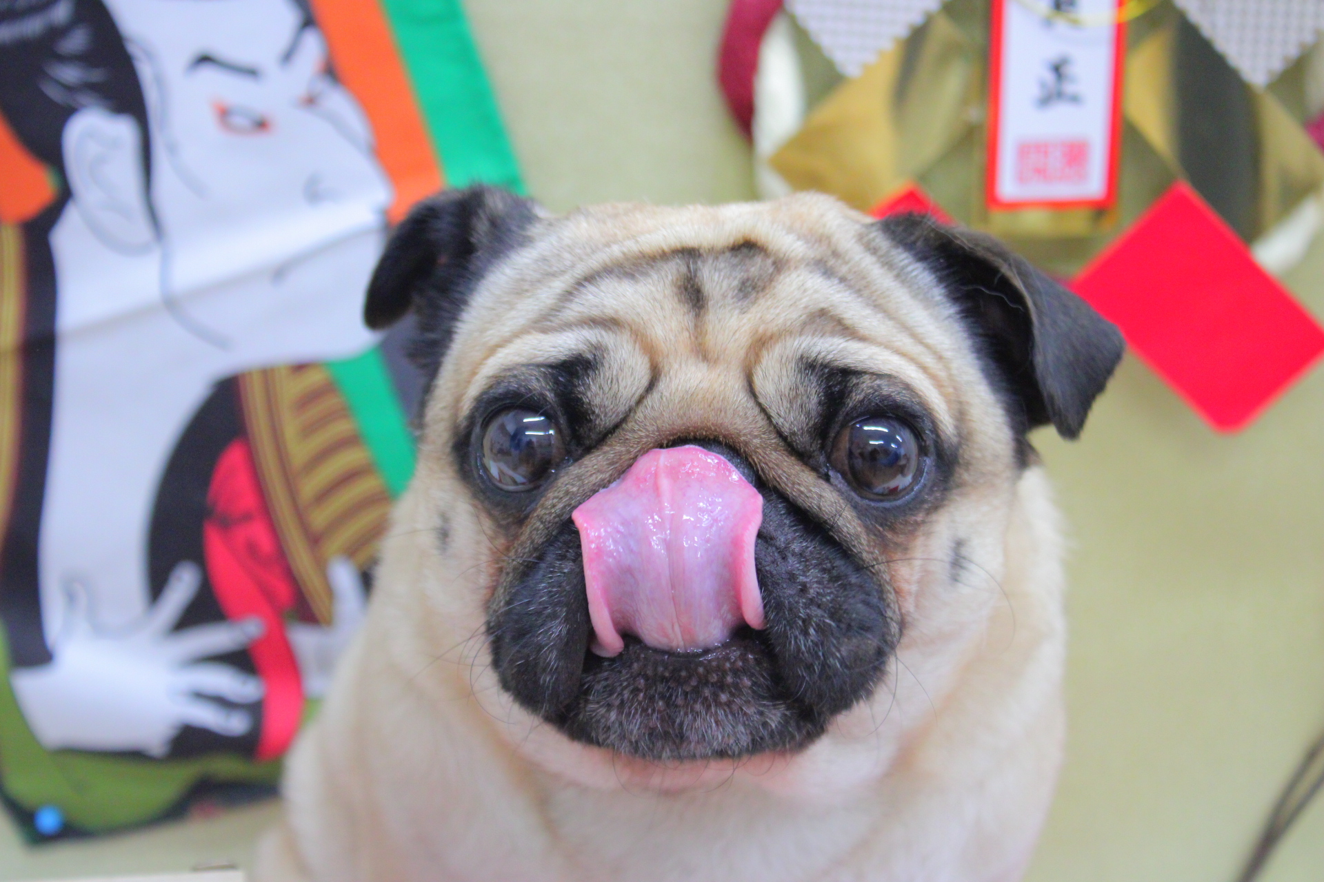 尻尾を振ってちらちらとスタッフを確認しながら