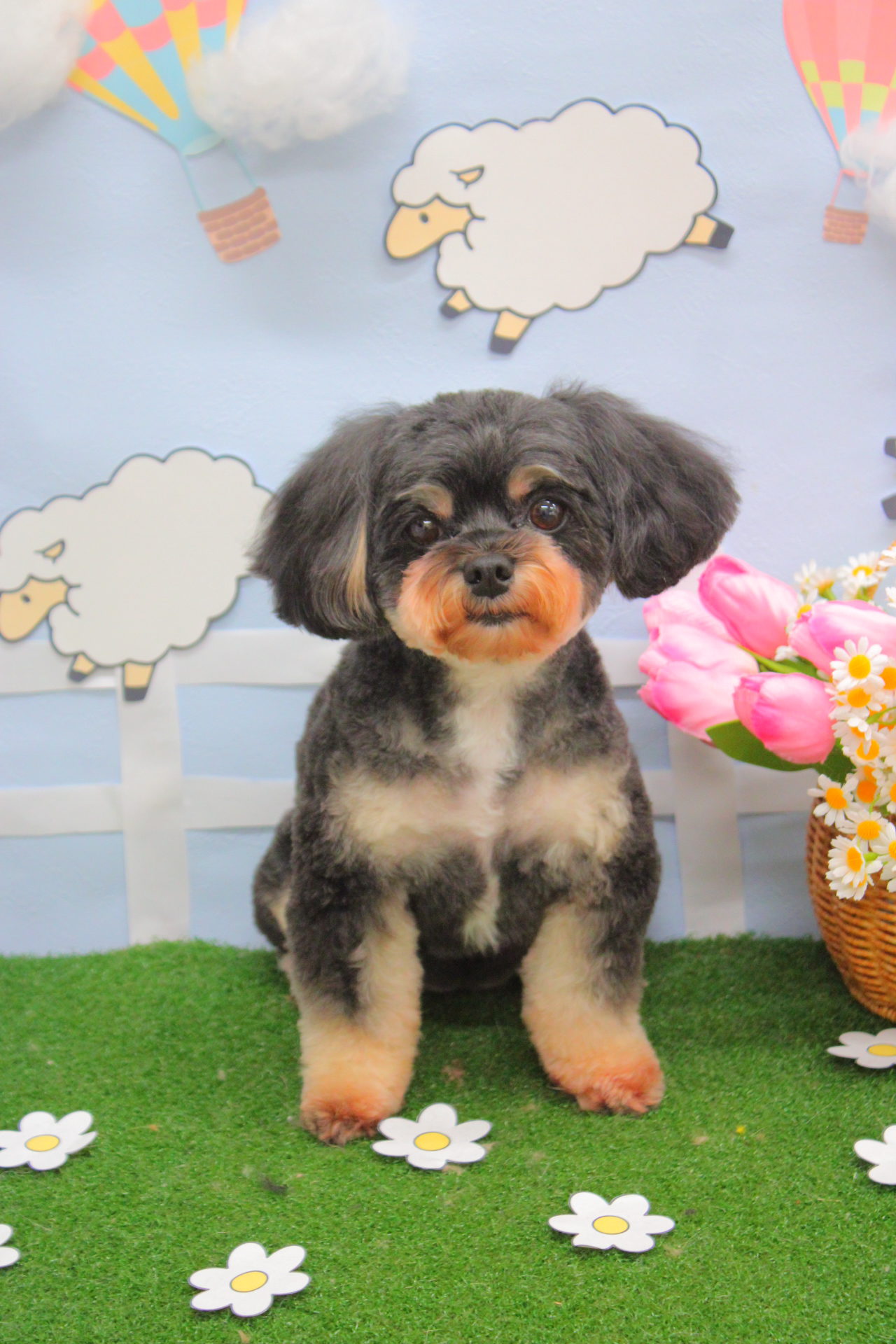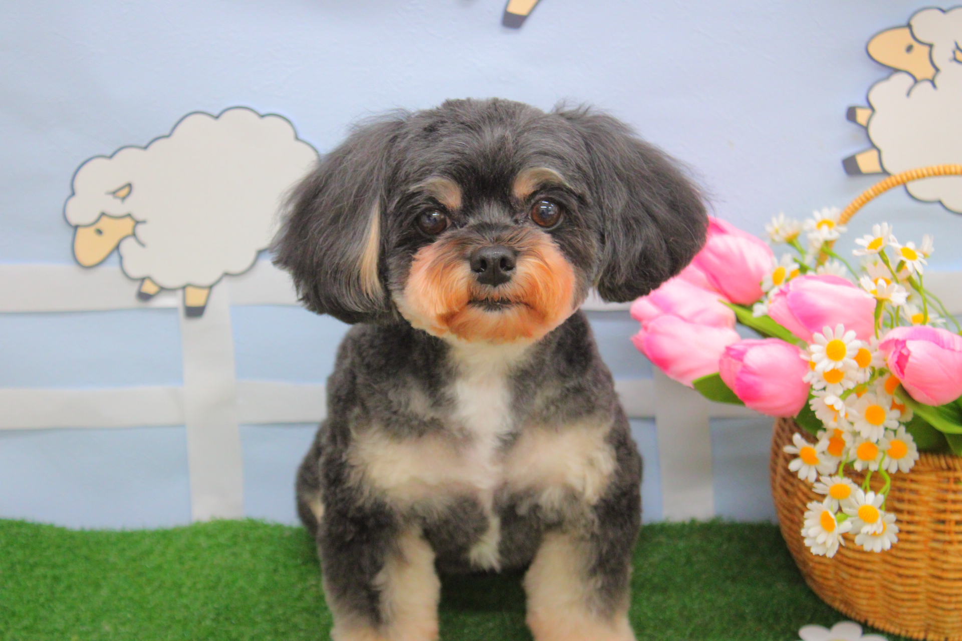 お顔まん丸ちゅったんとライオンカットの波くん、2人ともトリミング完了