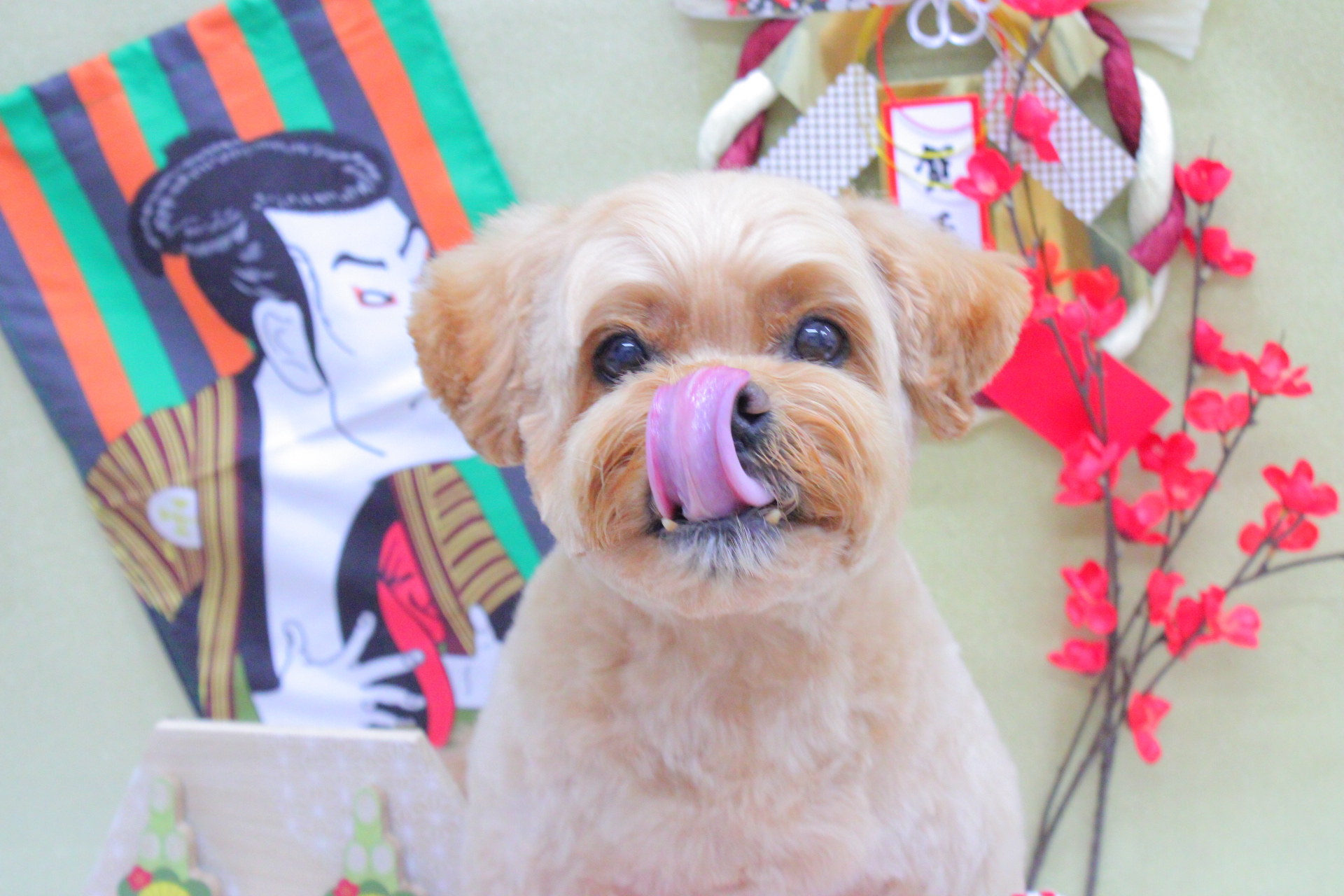 トリミングもぽかぽかになってウトウトしながらうれしい顔