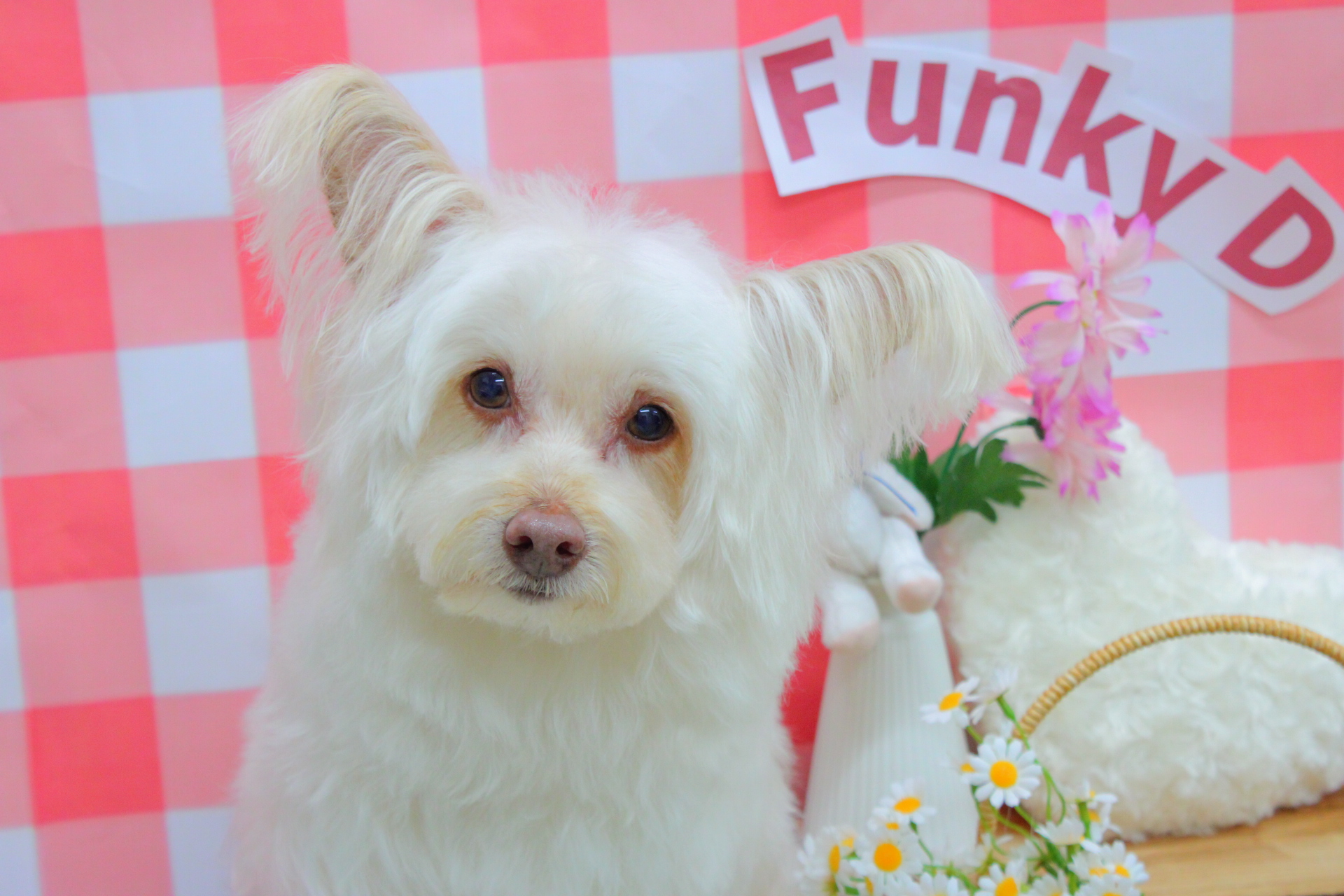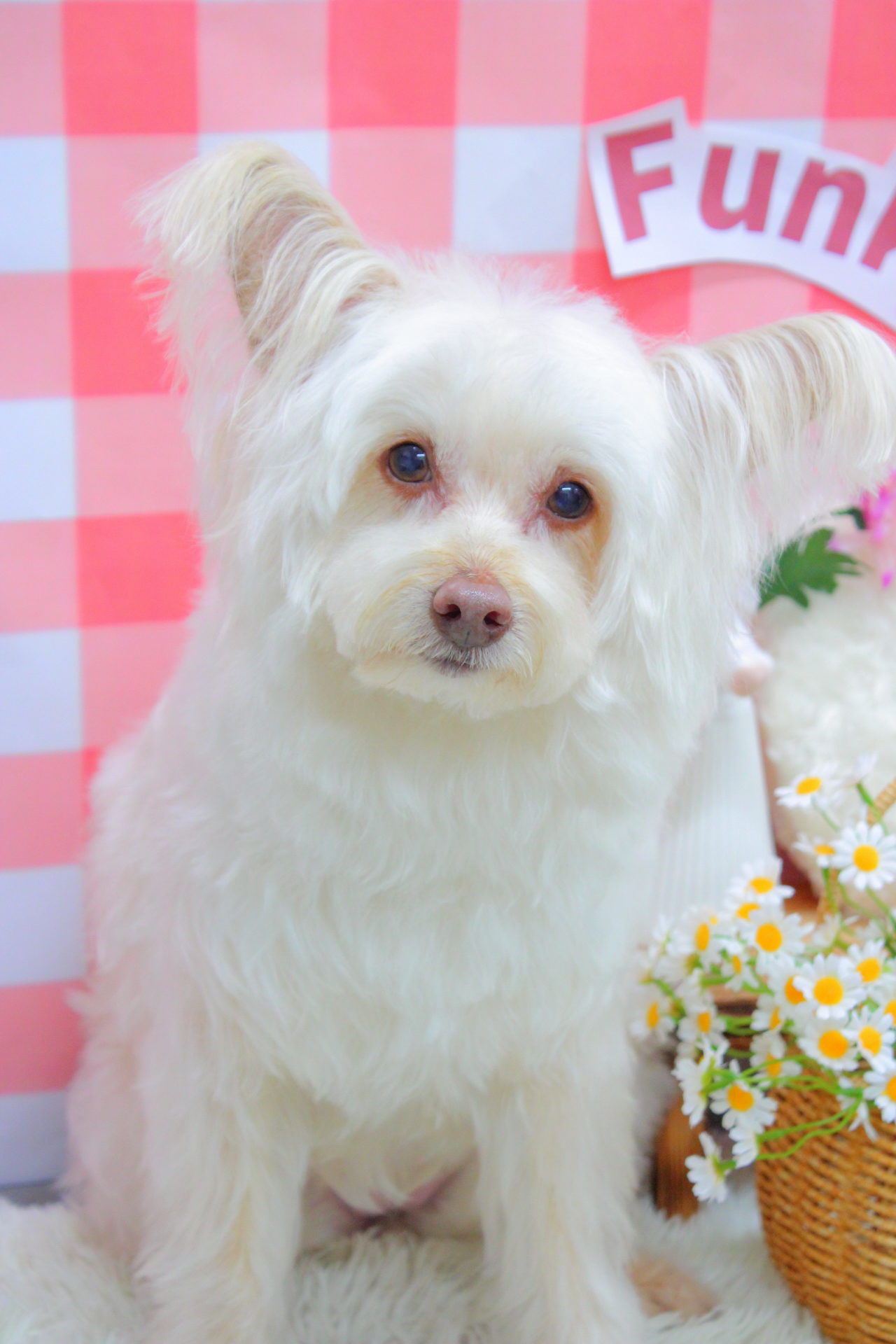 かわいいピンクの背景もよく似合ってるね